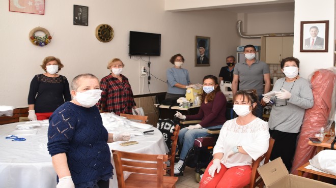 Koronavirüs önlemleri kapsamında toplu alanlarda maske kullanımının zorunlu hale gelmesiyle birlikte önemi bir kat daha artan maskeler; yüksek önemle hijyen sağlanan Foça Belediyesi Foça Kent Konseyi Engelsiz Kafe’deki atölyede üretiliyor.
