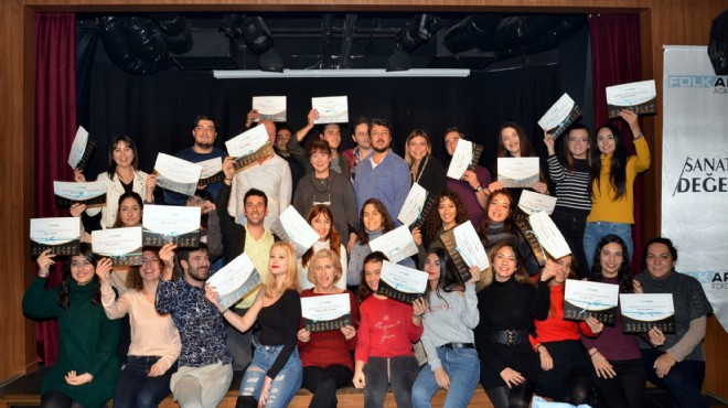 Folkart Academy’nin 2018 eğitim yılının ikinci yarısı olan Güz Dönemi Tiyatro Atölyesi’nde 200 çocuk, 100 yetişkin olmak üzere toplam 300 kişi eğitim aldı. Çocuklar, 5 hafta süresince 10 saat, yetişkinler ise 40 saat ücretsiz eğitim aldı. Öğrenciler, katılım belgelerini Folkart Academy'nin tiyatro salonunda düzenlenen törenle aldı. Ailelerin de çocuklarının heyecanına ortak olduğu törende Folkart Academy Proje Koordinatörü Volkan Severcan, çocuklarını sanatla buluşturduğu için ailelere teşekkür etti.
