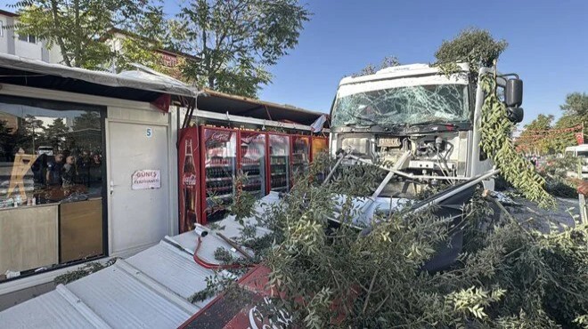 Kamyon yol kenarındaki 7 konteyner iş yerine çarptı.