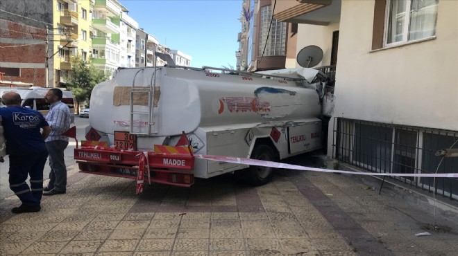 Tanker, park halindeki bir araca vurduktan sonra apartmana çarparak durabildi. Sürücü araçta sıkıştı. Durumun bildirilmesi üzerine olay yerine sağlık, itfaiye ve polis ekibi sevk edildi.