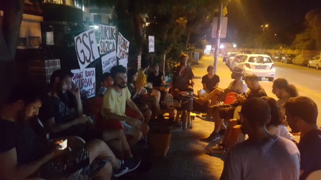 DEÜ Rektörlüğü’nün taşınma kararına, ‘Tınaztepe’de eğitim imkanlarının yetersiz olduğu’ gerekçesiyle itiraz eden GSF Öğrencileri geçtiğimiz hafta yaptıkları basın açıklamasında; rektörlük, kararından vazgeçene kadar Narlıdere’de bulunan GSF binası önünde gece gündüz oturma eylemi yapacaklarını açıklamıştı.