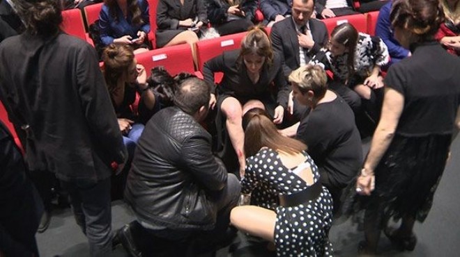 Galada merdivenden düşerek kaval kemiğinden yaralanan Bozoklu’ya, ilk müdahaleyi arkadaşları yaptı. (NTV)