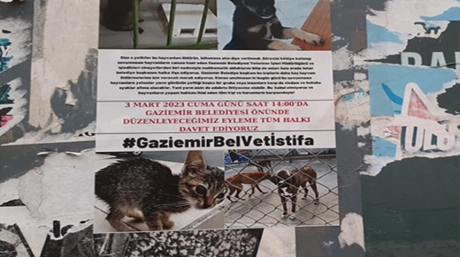Öte yandan Yıldız kentin işlek noktalarına birime teslim edilen ve uyutulduğu ileri sürülen bazı hayvanların fotoğraflarının da yer aldığı #GaziemirBelVetİstifa yazılı afişleri astı, ayrıca belediye binası önünde eylem duyurusu yaptı.