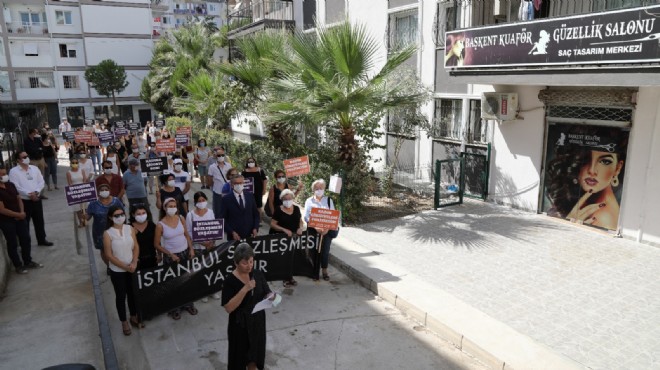 Grup adına basın açıklamasını okuyan ADD Gaziemir Şube Başkanı Gülen Özkan, kadına yönelik şiddetin açık ve tartışmasız insan hakları ihlali olduğunu dile getirdi. İstanbul Sözleşmesi’nin “ama”sız ve “fakat”sız, eksiksiz uygulanması gerektiğini vurguladı.
