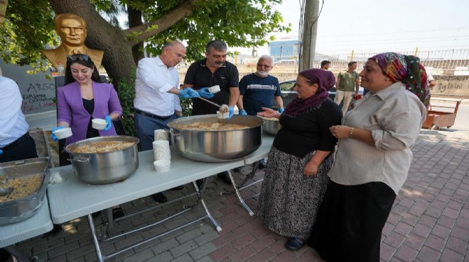 Gaziemir Belediyesi, birlik ve beraberliğin simgesi Muharrem ayında geleneksel hale getirdiği aşure ikramını bu yıl kentin üç farklı noktasında gerçekleştirdi. Sarnıç Cumhuriyet Meydanı, Aktepe Hizmet Binası önü ve Binbaşı Reşatbey Mahallesi’nde düzenlenen etkinliklerde 3 bin kişiye aşure dağıtıldı. Aşure ikramına katılan Gaziemir Belediye Başkanı Ünal Işık, kazanların başına geçerek vatandaşlara kendi elleriyle aşure ikram etti.