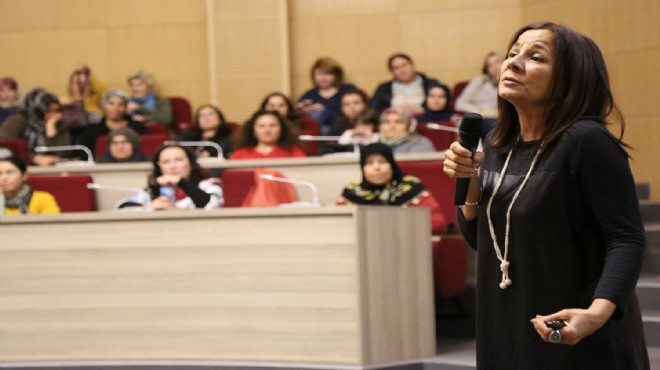 Gaziemir Belediyesi ile Cevdet İnci Eğitim Vakfı birlikteliğinde “Kadın öğrenirse aile mutlu olur” semineri düzenlendi. Eğitmen Yasemin Tutal, Gaziemirli kadınlara çocuğun yetiştirilmesinde ve aile yaşantısında kadının rolü ve önemi hakkında bilgi verdi.