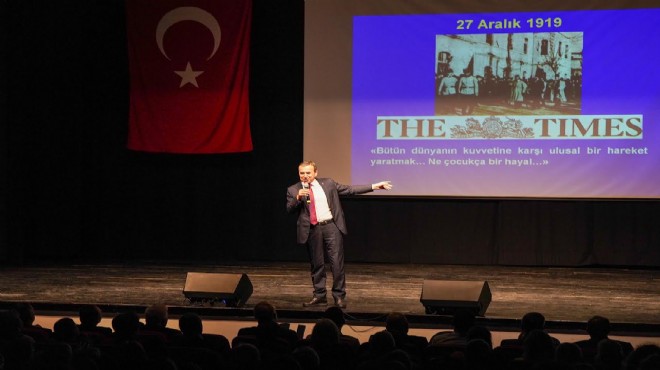 Gaziemir Belediyesi’nin Cumhuriyet Bayramı kutlama programı kapsamında Atatürk ve Cumhuriyet Söyleşisi düzenlendi. Gaziemir Belediyesi ile Atatürkçü Düşünce Derneği Gaziemir Şubesi iş birliğinde Atatürk Kültür Merkezi’nde düzenlenen söyleşide emekli Tuğgeneral, Tarihçi – Yazar Dr. Naim Babüroğlu, cephelerde kazanılan zaferlerden Cumhuriyet’in ilanına giden süreçte yaşanan tarihi gelişmeleri, resmi belgeler ve hatıralardan derlediği bilgiler ışığında Mustafa Kemal Atatürk’ün nasıl bir deha olduğunu anlattı.