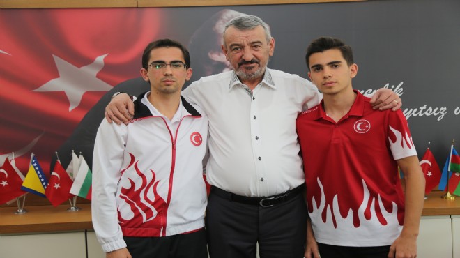 Gaziemir Belediyesi Gençlik ve Spor Kulübü Taekwondo Takımı sporcuları başarılarına her gün bir yenisini ekliyor. Ulusal ve uluslar arası turnuvalarda birçok derece kazanan belediye sporcuları Rahmi Çelik ile Zafer Çelik Milli Takım’da Gaziemir’i başarıyla temsil ediyor. Sporda olduğu kadar eğitim hayatlarındaki başarılarıyla da isimlerinden söz ettiren kardeş sporcular Antrenörleri Volkan Yalçınkaya ve Filiz Yalçınkaya ile birlikte Belediye Başkanı Halil İbrahim Şenol’la bir araya geldi. “Gaziemir’in gurur kaynağı oldunuz” diyerek tekvandocuları kutlayan Başkan Şenol, “Azminiz, yeteneğiniz, sporun yanında eğitim hayatınızdaki başarı öykünüz de gerçekten takdire şayan. Başarınızla göğsümüzü kabarttınız, gurur kaynağımız oldunuz. Ay yıldızlı forma ile çok büyük başarılar elde edeceğinize yürekten inanıyorum. Sonuna kadar yanınızdayım” diye konuştu.