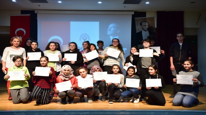 Belediye Hizmet Binası’ndaki sergiyi çocuk kursiyerlerle birlikte gezen ve onların ağzından çizdikleri resimler hakkında bilgi alan Başkan Şenol, sosyal projelerle Gaziemirli vatandaşların hayatlarına dokunmaya devam edeceklerinin altını çizerek şunları söyledi: “Belediyeler sadece yol, kaldırım yapmamalı, kültür-sanata, sosyal projelere de önem vermeli. Biz bu anlayışla 48 farklı branşta her yaştan ve her kesimden insana hitap eden kurslar düzenliyoruz. Çünkü sanatla, sporla uğraşan gençlerin hayatta daha başarılı olacağını biliyorum. Konuşmayan, eleştirmeyen, okumayan, tek tip bir gençlik yaratılmak isteniyor. Hayatta pasif kalmayın, bir hedefiniz olsun ve bu hedefe ulaşmak için mücadele edin. 2019’da inşallah savaşlar biter, çocuklar ölmez, anneler, babalar ağlamaz. Temiz bir dünyada mutlu bir yaşam sürmenizi dilerim.”
