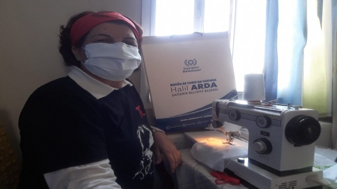 Gaziemir Belediyesi’nin Cumhuriyet Semt Evleri’nde düzenlediği kurslara katılan kadınlar ile Gaziemir Üretici Kadınlar Kadın Girişimi Üretim ve İşletme Kooperatifi üyesi kadınlar, evlerinde başladıkları maske üretiminde bugüne dek 4 bin maske dikmeyi başardı.
