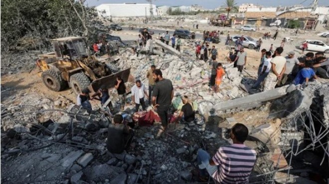 Enkaz altında halen binlerce ölü olduğu bildirilirken, halkın sığındığı hastane ve eğitim kurumları hedef alınarak sivil altyapı da tahrip ediliyor. (AA)