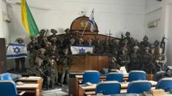 İsrail devlet televizyonu KAN, İsrail askerlerinin Gazze'deki Filistin Parlamentosu binasında bulunduklarını gösteren bir fotoğraf paylaştı.