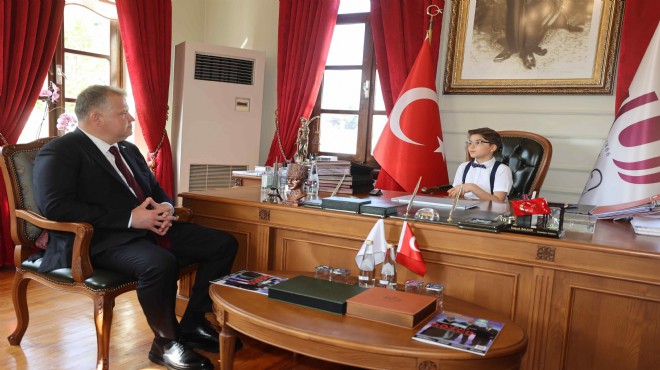 23 Nisan Ulusal Egemenlik ve Çocuk Bayramı kapsamında Urla Belediye Başkanı Selçuk Balkan, başkanlık koltuğunu Asiye Hüseyin Akyüz Bilim İlkokulu öğrencilerine devretti. Mustafa Alp Kızıl, Mevsim Ercan, Elif Deren Tunus ve Bulut Başar, sırayla belediye başkanlığı makamına oturarak Urla için hayal ettikleri projeleri Başkan Balkan’la paylaştılar.