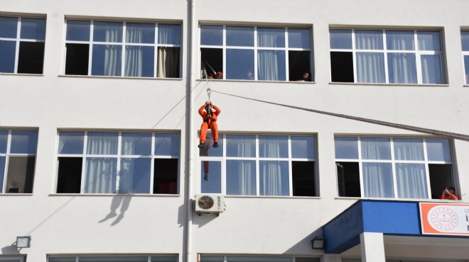 İzmir Büyükşehir Belediyesi'nin destekleriyle olay yerlerinde itfaiye erlerinden eğitim alan öğrenciler, 30 Ekim 2020'deki 6.6 büyüklüğündeki depremin yaklaşan 2'nci yıl dönümü nedeniyle okulda tatbikat yaptı. Profesyonel giysileri ve ekipmanlarıyla dikkat çeken öğrenciler, itfaiye araçlarını da kullanıp temsili olarak okulda mahsur kalan kişileri kurtardı.