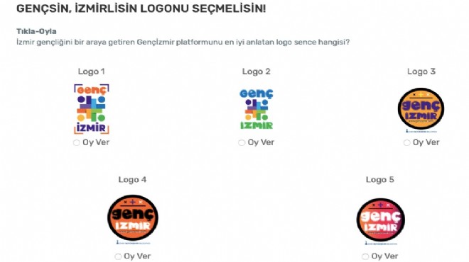 Büyükşehir Belediye Başkanı Tunç Soyer’in gençleri kentte söz sahibi haline getirme ve gelişimleri için fırsat yaratma vizyonuyla hayat bulan Genç İzmir, logosunu İzmirli gençlerin oylarıyla belirliyor. “Gencizmir.com” adresini ziyaret edenler beğendiği logoyu seçerek oylamaya katılabiliyor.