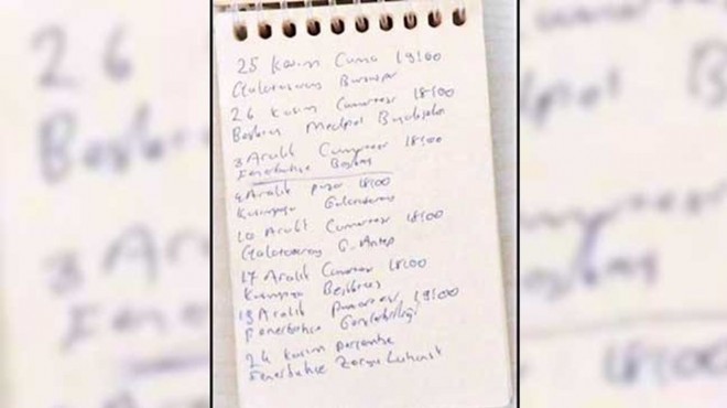 NOT DEFTERİNDEN MAÇ LİSTESİ ÇIKTI