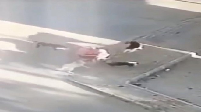 İZMİR - Buca ilçesinde, Demet Yağızoğlu'nun gezdirmek için dışarı çıkardığı köpeği, sokak köpeklerinin saldırısına uğradı. Köpeğini kurtarmak için sokak köpeklerinin arasına dalan Yağızoğlu yaralanırken, o anlar yakındaki bir iş yerinin güvenlik kameralarına yansıdı.
