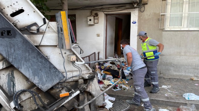 Zabıta ekipleri ve emniyet güçleri eşliğinde yapılan çalışmada, evdeki çöp yığınları kamyonlarla tahliye edildi, çevre dezenfekte edilerek hijyenik koşullar yeniden sağlandı.