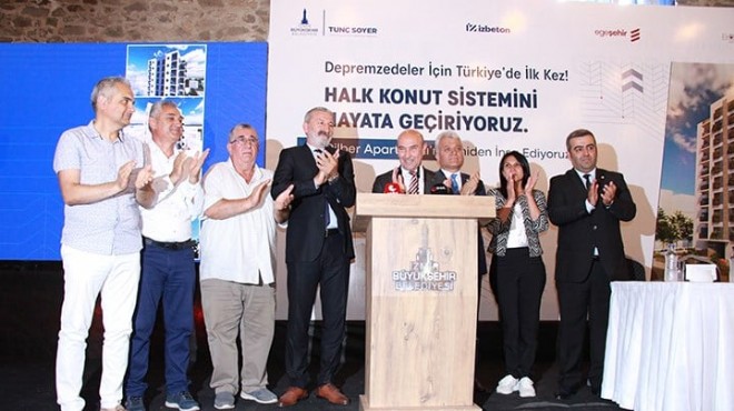 Bu sorunu aşmak için yerinde dönüşüm, yüzde yüz uzlaşı şartı, İzmir Büyükşehir Belediyesi garantörlüğü, İzbeton şirketimiz aracılığıyla Türkiye'ye örnek olacak Halk Konut sistemini oluşturduk. Bu proje ile depremde evleri yıkılan vatandaşlarımıza apartman ve site bazında kooperatifler kurdurup kendi evlerinin müteahhiti olmalarını sağladık. Nitekim Bayraklı'da çok sayıda hemşerimiz bu evlerde güvenle oturuyor. Müteahhitlerin teklif dahi vermediği kentsel dönüşüm alanlarında ise başka bir yöntem uyguladık. Burada da konut sahibi olmak isteyenler kooperatif kurarak inşaatları üstlendi. Kooperatif üyelerinin bir daireyi kendilerine, bir daireyi de gecekondu sahiplerine yaptığı bu sistem büyük ilgi gördü ve kentsel dönüşüme büyük hız kazandırdı.
