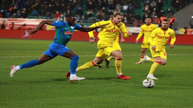 Spor Toto Süper Lig'de kurtuluş yolunda önemli rakiplerinden son sıradaki Çaykur Rizespor'la deplasmanda karşı karşıya gelen Göztepe sahadan 3-1 yenik ayrılarak büyük darbe yedi. Son 3 maçta 5 puan toplayıp umutlanan sarı-kırmızılılar Rize'de eşitliği yakalasa da takım kaptanı Halil Akbunar'ın 68'inci dakikada kırmızı kart görmesiyle darmadağın oldu. Bu sonuçla 16'ncı haftayı da düşme hattında tamamlayan Göztepe, üst sıralardaki takımlarla arasındaki puan farkını 1'e indirme fırsatını tepti. Ligde 8'inci yenilgisini alan İzmir ekibinde teknik direktör Nestor El Maestro alınan yenilgilerin kendilerini mental olarak zor duruma soktuğunu söyledi.
