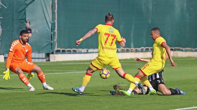 İZMİR - Urla Adnan Süvari Tesisleri'nde oynanan karşılaşmaya Göztepe; Günay, Enes, Kadu, Kosanovic, Tanju, Serkan, Segbefia, Ngando, Halil, Ömer ve Jahovic on biriyle çıkarken, Manisaspor ise Emrullah, Dimov, Hüseyin, Mustafa, Mikic, Asım, Berkay, Bakaki, Zahit, İsmail Haktan ve Atiemwen tertibiyle mücadele etti.