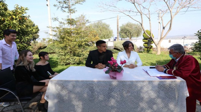 Güzelbahçe Belediye Başkanı Mustafa İnce’nin kıydığı nikâh, Koronavirüs tedbirleri ne uyularak Güzelbahçe Belediyesi Bahçesi’nde kıyıldı. Pandemi nedeniyle aileler çağırılmadan sade bir nikah yapıldı. Genç çiftin nikah akdini gerçekleştirmekten mutluluk duyduğunu belirten Güzelbahçe Belediye Başkanı Mustafa İnce, ‘‘Sizlere sevgi, saygı ve huzurun hâkim olduğu uzun ve mutlu bir birliktelik diliyorum. Ailenin en güzel meyvesi olan hayırlı evlatlara sahip olmanızı ve Atatürk ilkelerine sahip çıkacak nesiller yetiştirmenizi temenni ediyorum. İzmir’imizi Süper Ligde gururla temsil eden Göztepe’mizin kalesini emanet ettiğimiz genç kaleci İrfan Can’a başarı dolu ve uzun bir kariyer hayatı diliyorum’’ dedi. Başkan İnce, İrfancan’a İstanbul Sözleşmesi kitapçığını, Nikah Cüzdanını da Ceren Nur’a takdim etti ve mutluluklar diledi.