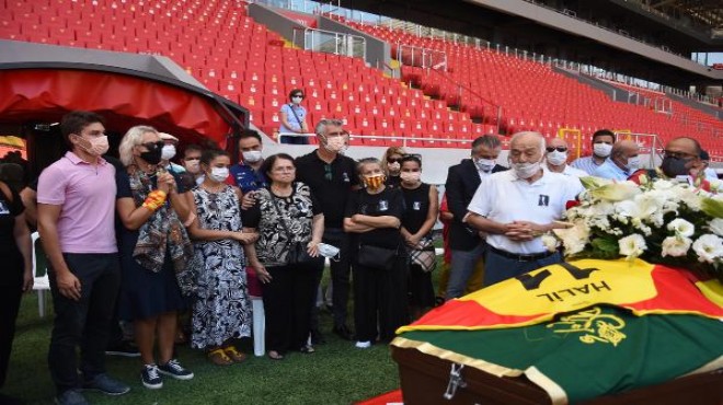 Böbrek yetmezliği nedeniyle tedavi gördüğü 9 Eylül Üniversitesi Hastanesi'nde dün akşam 76 yaşında hayatını kaybeden Göztepe ve A Milli Takım'ın eski futbolcularından Halil Kiraz, son yolculuğuna yıllarca antrenman yaptığı kulüp tesislerinin yerine inşa edilip, eski takım kaptanının adını taşıyan Gürsel Aksel Stadı'ndaki törenle uğurlandı. 'Bombacı' lakaplı efsane futbolcu için yapılan törene Başkan Mehmet Sepil, hayatta olan eski takım arkadaşları ve ailesi katıldı. Tören esnasında stat hoparlörlerinden Halil Kiraz için taraftarların yaptığı tezahüratlar verilirken skorborda efsane futbolcunun fotoğrafları yansıtıldı. Efsane futbolcunun tabutunu statta Başkan Mehmet Sepil ve Başkan Vekili Talat Papatya omuzladı. Kiraz'ın eşi Önem Kiraz, oğlu Tan ve kızı İlgi, törende ayakta durmakta güçlük çekti.