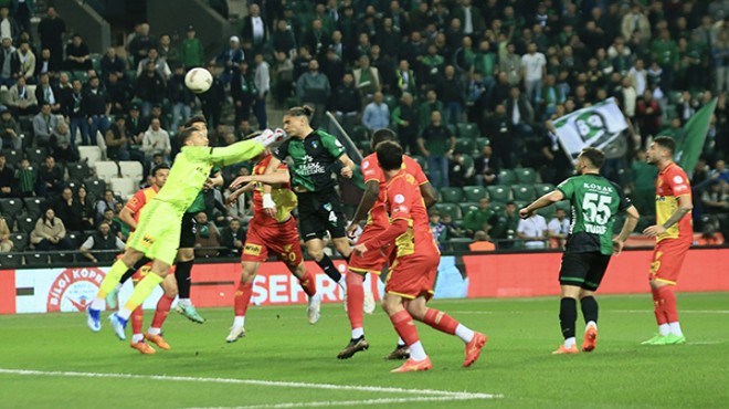 1'inci Lig'de direkt Süper Lig'e yükselme mücadelesi veren Göztepe, sezonun en dramatik mağlubiyetlerinden birini aldı. Önemli rakiplerinden Kocaelispor'a konuk olan sarı-kırmızılılar 83'üncü dakikaya kadar 2-0 önde götürdüğü maçı eşine çok az rastlanır şekilde 3 penaltı golüyle 3-2 kaybetti. Emir Ortakaya'nın kendi kalesine attığı golle ilk yarıyı 1-0 önde tamamlayıp 71'de Kubilay'ın golüyle 2-0'ı bulan İzmir ekibi, 83'üncü, 90'ıncı ve 90+9'uncu dakikada Candeias'ın penaltı golleriyle yıkıldı. Takipçisi Sakaryaspor'un kaybettiği haftada farkı açıp Süper Lig kapısını aralama fırsatını tepen Göztepe, yine de büyük avantajı elinde bulundurdu. Bitime 6 maç kala rakiplerinin 8 puan önünde yer alan Göztepe, yenilgiye rağmen Süper Lig için yine en büyük favori takım konumunda kaldı.