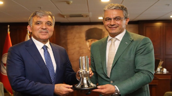 Törende bulunan Karşıyaka Belediye Başkanı Hüseyin Mutlu Akpınar Gül’ü önce belediye tesisi Kent Konsept Mutfak’ta yemekte ağırladı. Ardından ikili Akpınar’ın davetiye belediye binasına geçti. Gül burada bandoyla karşılandı. Makamdaki buluşmada Akpınar, Gül’e projelerini anlatırken, Karşıyaka’nın Avrupa Şeref Bayrağı almaya hak kazandığını da paylaştı.