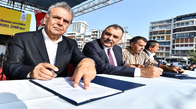 İzmir Büyükşehir Belediyesi, 2. Tarım Festivali çerçevesinde Gödence Köyü Tarımsal Kalkınma Kooperatifi ile zeytinyağı, İzmir İli Arı Yetiştiricileri Birliği ile bal, Tire Süt Kalkınma Kooperatifi ile süt, Hopa Tarımsal Kalkınma Kooperatifi ve Özçay Kooperatifi ile çay, Bergama İlçe Merkezi Tarımsal Kalkınma Kooperatifi ile zeytin, Bayındır Çiçek Üreticileri Tarımsal Kalkınma Kooperatifi ile de çiçek alım sözleşmeleri imzaladı. Başkan Kocaoğlu ve kooperatif başkanlarının imza koyduğu sözleşmeler ile Büyükşehir Belediyesi'nin ihtiyaç sahiplerine dağıttığı yardım paketlerinde y er alacak 95 bin adet bal, 47 bin 600 litre zeytinyağı, 30 bin kilo çay, 15 bin kilo zeytin ve 12 milyon 650 bin litre süt ile İzmir'in park ve bahçelerini güzelleştirecek 5 milyon 168 bin adet bitki alımı yapıldı.