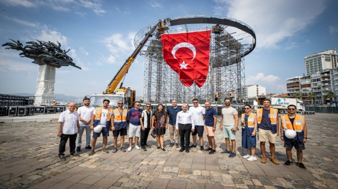 Büyükşehir Belediye Başkanı Tunç Soyer, İzmir’in kurtuluşunun 100’üncü yıl dönümü için tarihe geçecek etkinliklerin hazırlıklarını inceledi. İzmir Büyükşehir Belediyesi tarafından Türkiye’nin en görkemli 9 Eylül kutlamalarına ev sahipliği yapacak Gündoğdu Meydanı’na gelen Başkan Tunç Soyer, artırılmış gerçeklik destekli interaktif teatral şovun yapılacağı dev sahnenin yapım çalışmaları hakkında bilgi aldı.