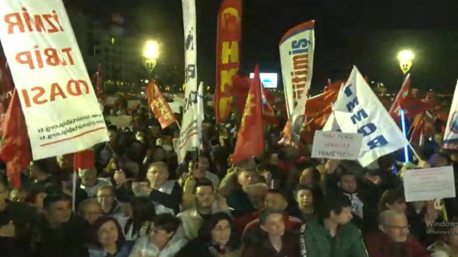 İzmir’de İmamoğlu’nun gözaltına alınması ve ardından tutuklanması sonrasında başlayan protesto eylemleri sürüyor. Emek ve Demokrasi Güçleri ile CHP İzmir öncülüğünde vatandaşlar Gündoğdu Meydanı’nda bir araya gelerek "Darbeye hayır" eylemi gerçekleştirdi.