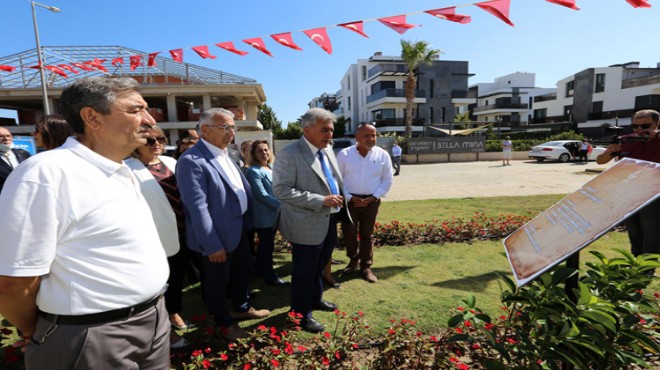 Konuşmanın ardından vatandaşlarla birlikte 11 Eylül Güzelbahçe Kurtuluş Parkı tabelasının açılış yapıldı.