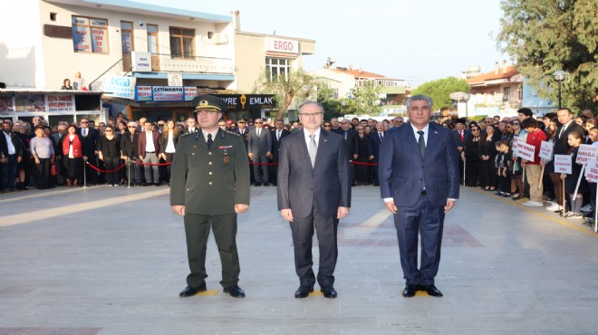 ?Öncelikle Atatürk Mahallesi Cumhuriyet Meydanı’ndaki Atatürk Anıtı önünde toplanan Güzelbahçe Kaymakamı Hüseyin Kulözü, Garnizon Komutanı Topçu Albay Feridun İşler, Güzelbahçe Belediye Başkanı Mustafa İnce, siyasi partilerin başkan ve yöneticileri, sivil toplum kuruluşlarının başkan ve yöneticileri, öğretmen, öğrenci ve vatandaşlar Atası’nın huzuruna çelenk sundu.