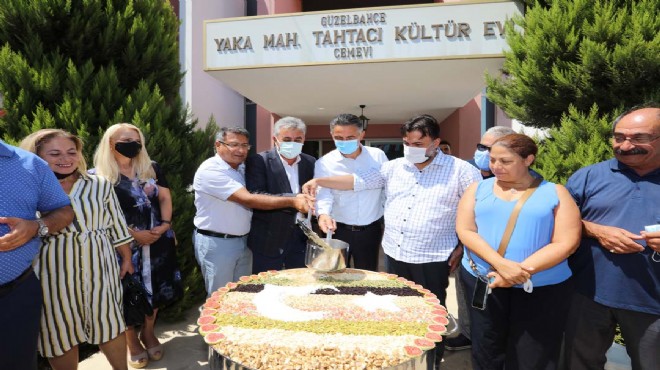 ?Temelde paylaşmayı hedefleyen bu birlikteliğin bir ömür süreceğini söyleyen Güzelbahçe Belediye Başkanı Mustafa İnce, ‘‘Her Muharrem Ayı’nda burada her Ramazan Ayı’nda belediye düğün salonumuzda ve mahallelerimizde soframızı paylaşıyoruz. Hz. Hüseyin ve 72 canın Kerbela’da katledildiğinden beri bu kazan kaynamaya devam ediyor. Bu kazan da sadece karın doymuyor. Paylaşmak, kardeşlik ve dayanışma öğreniliyor. Bu mahallenin bir evladı olarak buradaki Cem Evi’nin yapımında benimde bir katkımın olması her zaman gurur veriyor. Tutulan oruçlar kabul olsun’’ dedi.