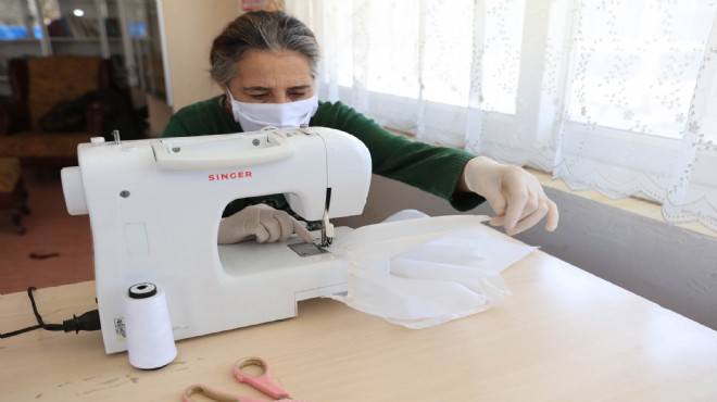 Koronavirüs ile mücadele de büyük bir çaba gösteren Güzelbahçe Belediyesi kendi imkanlarıyla ‘kullan-at’ tipi maske üretip, dağıtıyor.