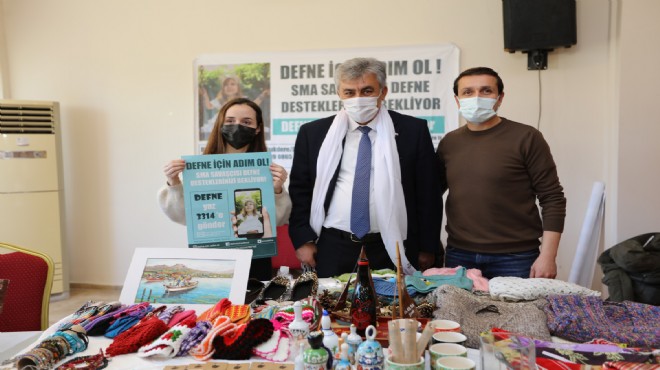 Bugüne kadar birçok STK ve ünlü ismin kampanyaya destek olduğu öğrenilen minik Defne'nin 13 Ekim'de doğduğunu söyleyen anne Öznur Işıkdere yardımseverlere seslenerek "Gelin hep birlikte çocukluğunu hediye edelim" dedi. SMA savaşçısı Defne bebeğe bir umut için katkı sunacaklarını söyleyen Güzelbahçe Belediye Başkanı Mustafa İnce ‘‘Minik Defne'nin, 3 kilo daha alması halinde, tedavisi mümkün olmayacak. Defne SMA Tip 1'ler kadar güçsüz, Tip 2'ler kadar ise güçlü bir bebek olmadığı için güçlü SMA Tip 1 olarak geçiyor. Kampanyanın % 12'lik dilimi tamamlanmış. Valilik izni Haziran ayında alınmış ve 1 yıl süresi var Defne bebeğin. Burada sanatçılarımız unutulmaya yüz tutmuş değerlerimizi el sanatlarımızı bin bir emek vererek yaşatıp, sergiliyorlar. Onlara ve SMA hastalığı için savaşan birçok bebeğimiz gibi mücadele eden Defne bebeğimize de sahip çıkmamız gerekiyor. Sevdiklerimize el emeği sergideki hediyeliklerden alarak onları mutlu edelim, Defne bebeğimize umut olalım, yeni yıla sağlıkla, barışla, huzurla ve yeni umutlarla girelim. Tüm halkımızı Güzelbahçe Belediyemizin düğün salonunda açtığımız bu sergiye bekliyoruz. Haydi, siz de gelin ve bir çocuğun umuduna katkıda bulunun’’ dedi.
