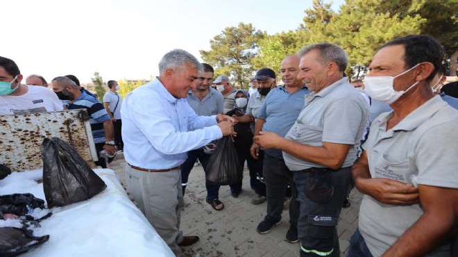 Konuşmaların ardından Başkan İnce’ye Güzelbahçe Belediyesi Belediye-İş Sendikası baş temsilcisi Zeki Ekren çiçek ve hediye verdi. Tüm katılımcılara tatlı ikram edilerek, personele kurban eti dağıtıldı.