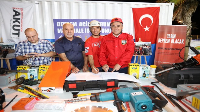 Güzelbahçe Vapur İskelesi’nin girişine konulan “Deprem Acil Durum İstasyonu”nda olası deprem anında enkaz altında kalan insanların kurtarılması için gerekli olan araç ve gereçler depolanıyor. İstasyonun hizmete sunulması nedeniyle düzenlenen törende konuşan Güzelbahçe Belediye Başkanı Mustafa İnce, “En iyi dost kötü gün dostudur. AKUT bu açıdan bizim zor günümüzde yanımızda olacak olan bir sivil toplum kuruluşudur. Onlarla daha önce de çeşitli sürekli işbirliği içinde olduk. Şimdi de Deprem Acil Durum Müdahale İstasyonu’muzun hizmete girmesinde bize öncülük ettiler” dedi.