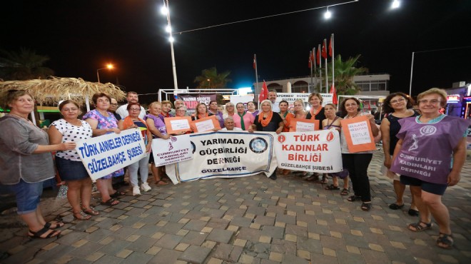 Çocuğunun gözleri önünde öldürülen Emine Bulut ve şiddete kurban giden tüm kadınlar adına konuşma yapan Cumhuriyet Kadınlar Derneği Güzelbahçe Şubesi Başkanı Mesude Öney, “ çocuğunun gözleri önünde ölmek istemediğini haykırarak ölüme giden Emine Bulut’un uğradığı zulmü lanetliyoruz. Kadınların uğradığı şiddet, taciz, tecavüz ve ölüm haberleri yazılı ve görsel medyada her gün yerini alıyor. Yetkili kurumlar açıklama yapıyor ve kadınların ‘ölmek istemiyorum’ haykırışları kulaklarımızda çığlık, vicdanlarımızda yaralar açarak yeni bir habere yer açmak için gerilere itiliyor. Kadınların şiddete uğraması bu şiddetin devamında çocuklarının yakınlarının önünde paramparça olmaları bir sonuçtur. İçinde yaşadığımız ekonomik, siyasal ve kültürel bütünün kadınlara sunduğu bir sonuç. Başka Emine Bulut olayları yaşanmaması için üzerimize düşen görevleri yapmak. Başı darda olan kadınlarımıza destek olmak, sorunlarını birlikte göğüslemek için görev başında olacağız. Tüm yetkilileri de kadını ikinci sınıf sayan eşitsiz, yazısız yasalarla mücadelede sorumluluklarını yerine getirmeye davet ediyoruz” dedi.