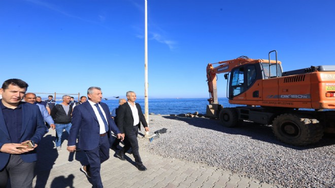 Güzelbahçe Belediye Başkanı Mustafa Günay göreve gelir gelmez seçim vaatlerinden biri olan ‘Sahil Projesi’ için ilk kepçeyi vurdu.