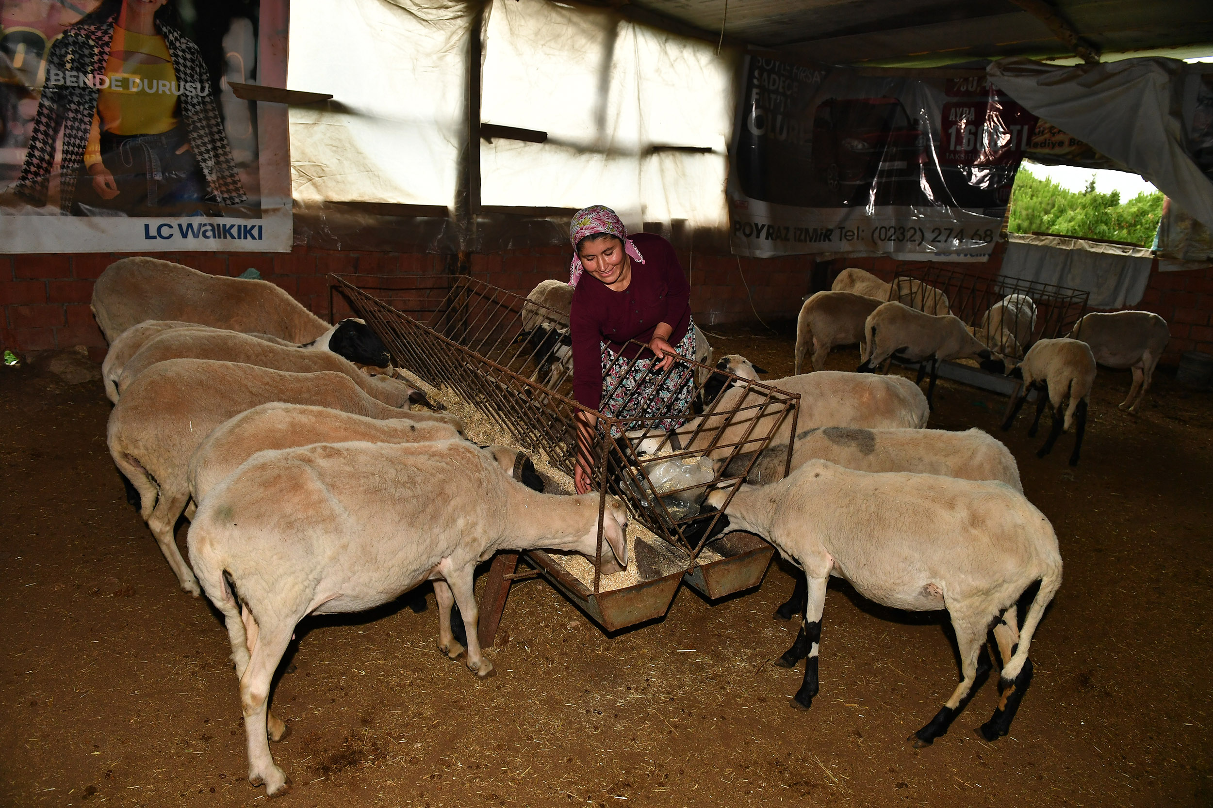 30 yaşındaki Emine Ergin, İzmir Büyükşehir Belediyesi’nin üretimi destekleme konusunda çok büyük teşvikleri olduğunu belirterek “Belediyemizin sağladığı üretim desteğine başvurdum ve başvurumun sonucunda belediyenin dağıtımını yaptığı 3 sakız koyunu ve 1 koçla hayvancılığa başladım. 3 yıl içerisinde sevgi ve emek vererek hayvan sayımı arttırdım, sürüyü büyüttüm. Evimin ve çocuklarımın et ve süt ihtiyacını tümüyle kendi hayvanlarımdan üretiyorum. Ayrıca kurbanlık koyun satarak geçimimi sağlıyorum.” diye konuştu.