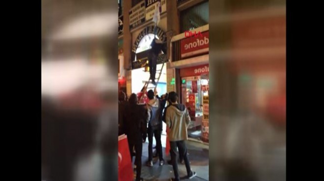 Bayrakların asıldığını gören bir grup tepki gösterdi. Daha sonra tepkiler büyüdü ve ülkücü olduğu belirlenen grubun sayısı arttı. Gerginlik nedeniyle HDP’liler parti binasının içine girip ışıkları kapatarak, kapıları kilitledi.
