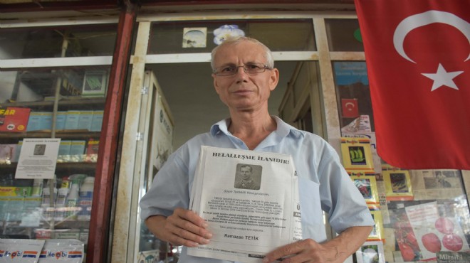 Torbalı'daki kapalı pazar yerinde tarım ilacı, sebze tohumu ile gübre satışı yapan, evli ve 1 çocuk babası Ramazan Tetik, 15 Temmuz'da hac görevini yerine getirmek için kutsal toprakları ziyaret edecek. Yaklaşık 50 yıldır ticaretle uğraşan Tetik, hacca gitmeden önce alacağı ve borcu olanlar ile helalleşmek için yerel gazeteye ilan verdi. 'Bu 50 yıl içinde benden alacağı olanların gideceğim gün saat 19.00'a kadar kapalı pazar yerindeki dükkanıma bekliyorum. Benim hakkım geçtiyse herkese hakkımı helal ediyorum. Bana borcu olanların da en kısa zamanda borçlarını ödemelerini bekliyorum' yazılı ilan veren Tetik, 2 gün içinde çok sayıda kişinin kendisini ziyaret ettiğini anlattı.