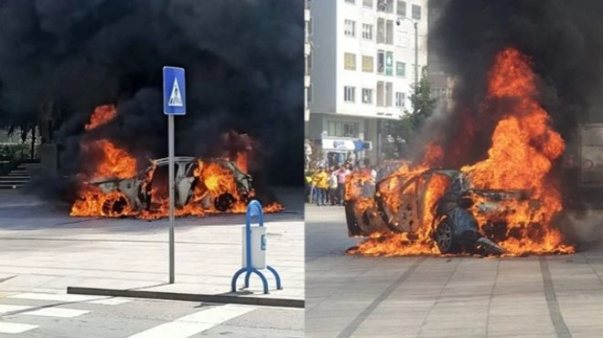 Alev alev yanan otomobil ihbar üzerine olay yerine gelen itfaiye ekiplerince söndürüldü.