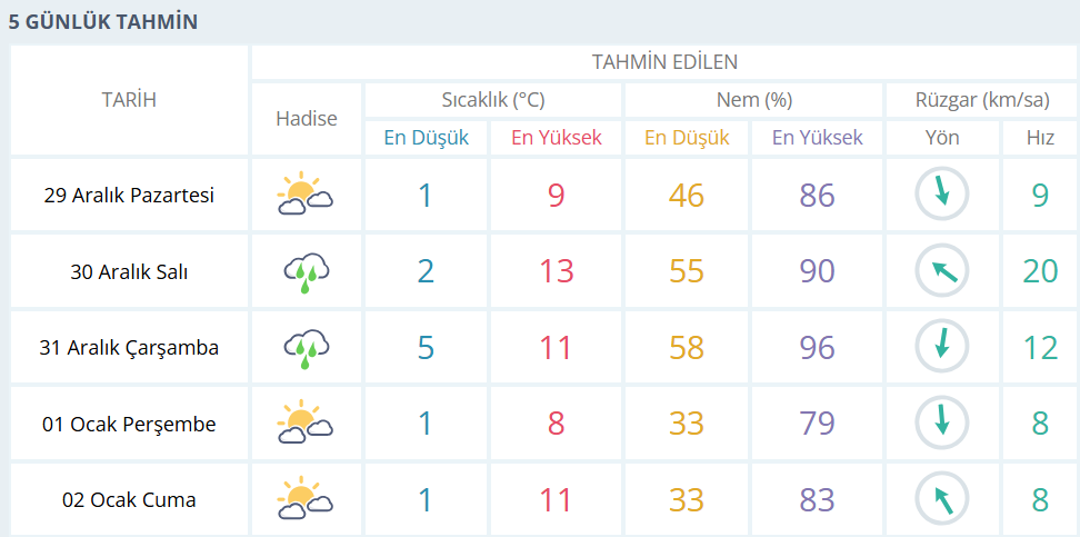 2026’ın ilk günü olan 1 Ocak Perşembe ise hava parçalı bulutlu ve 8 derece olacak.