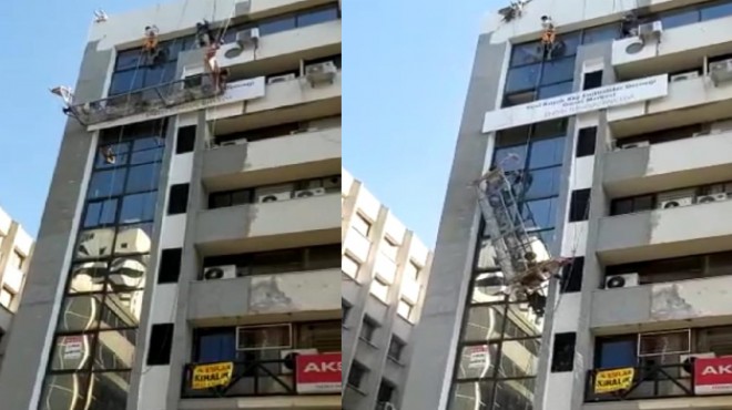 Olay, akşam saatlerinde İsmet Kaptan Mahallesi, Hürriyet Bulvarı'ndaki binada meydana geldi. İki işçi, boya yapmak için bulvarındaki binanın en üst katına halatlara bağlı olan vinçle çıktı. Bir süre sonra halatlardan ses geldiğini ve bir problem olduğunu fark eden baba ve oğul 2 işçi, sağlam olan emniyet halatına tutunup, yukarıya tırmandı. İşçilerden biri, ayağıyla bir ofisin camını kırarak içeri girerken, diğeri de balkona kendisini atarak kurtuldu. Olay, çevredekiler tarafından cep telefonuyla kaydedildi.