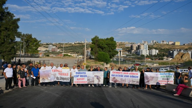 Sabah erken saatte tesise giden yolu kapatan mahalle sakinleri, "Doğa sevginiz balon çıktı", "Çöp gitsin çilemiz bitsin" ve "Mavi körfez yeşil İzmir dediniz Harmandalı'nı çöpe boğdunuz" yazılı pankartlar açtı.