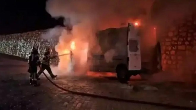 İtfaiye ekiplerinin müdahalesiyle yangın söndürülürken, hasta nakil aracı kullanılamaz hale geldi.