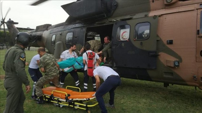 İzmir İl Sağlık Müdürü Bediha Salnur, AA muhabirine yaptığı açıklamada, iki hastanın da hayati tehlikesinin bulunduğu için aynı anda hem 112 hava ambulansının hem de askeri helikopterin havalandığını söyledi.